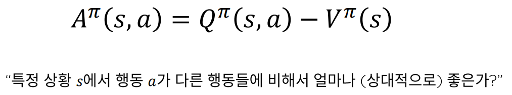 이를 Advantage Function A(s,a)라고도 하는데,