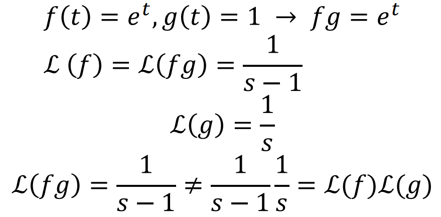 t도메인에서 곱이, S도메인에서 곱을 의미하지 않는다.