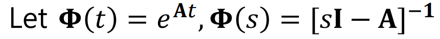 위의 식에서 e^(At)를 state Transition Matrix 또는 Fundamental Matrix라고 표현하며,